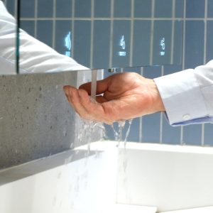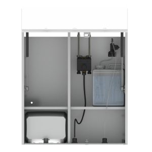 Install the battery box underneath the sink using the adhesive foam and connect the electronic unit connector coming from the products body.