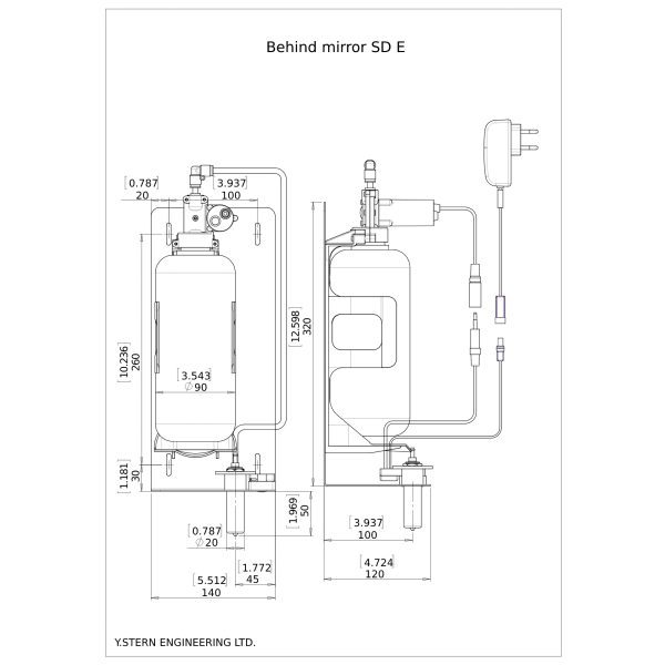 • Touchless soap dispenser for for hidden installation behind the mirror.