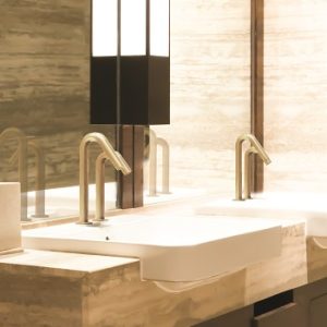 Smart bathroom fixtures – hand dryer, mixing valve, touch free faucet, touch free soap dispenser.