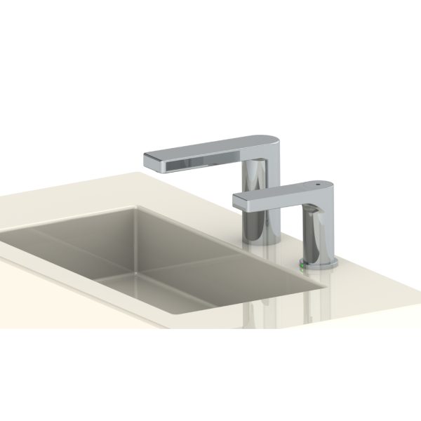 Deck-mounted faucet. Combining an elegant design with vandal-resistant features. Easy installation. Long lasting even in the harshest installation sites. Helps washrooms stay clean and saves water. Prevents cross contamination. Ideal for stadiums, train and bus stations and highway rest stops. Combined with Boreal touch free electronic soap dispenser, it creates a germ-free and automated environment.