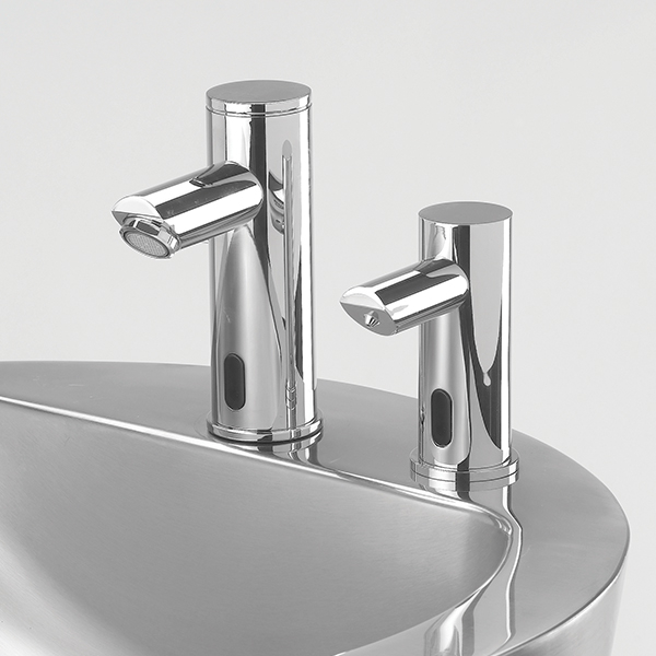 The Smart series comprises a range of electronic commercial taps designed for deck-mounted installations. These touchless faucets are equipped with cutting-edge infrared sensors that activate water flow without any physical contact. The chrome-plated body exudes a polished appearance, and other finish options are also available to suit various aesthetics. Notably, each faucet comes with a low battery indicator for timely maintenance awareness, ensuring continuous operation.