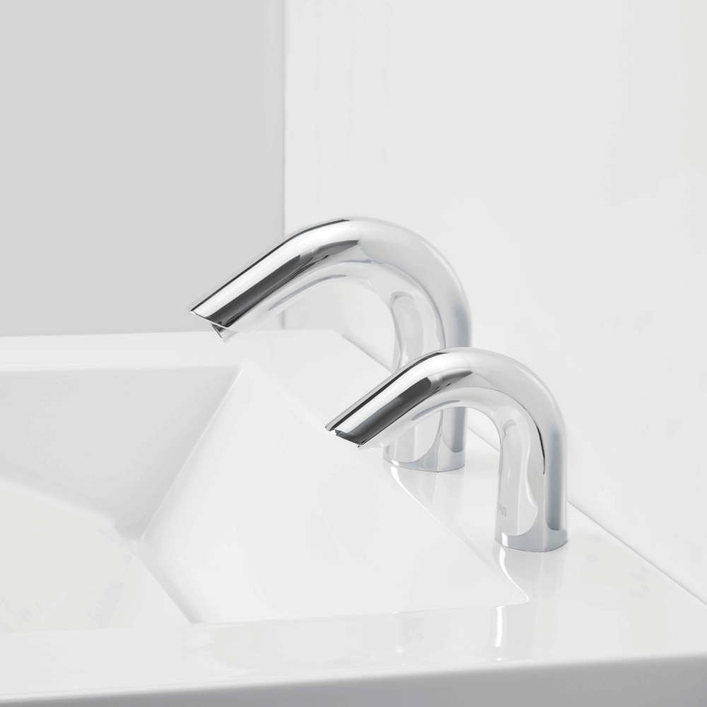 Touch-free electronic faucet and soap dispenser are automatically activated when users place their hands in the sensor range and stops when the users remove their hands. Soap dispenser closes automatically without dripping. The Classic CS Soap and Water Duo helps ensure hygiene and cleanliness in commercial restrooms . The matching set creates a complete germ-free and automated environment.