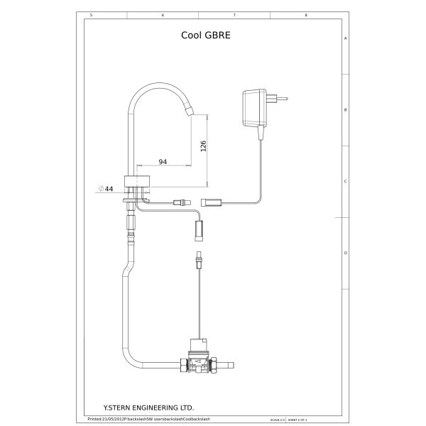 Touch-operated self-closing electronic bottle filler commercial tap. With LED ring illumination. Gooseneck spout. For cold or premixed water. Filter included. The bottle filler will automatically shut off after a factory set flow time of 15 seconds. The flow time is adjustable on site.