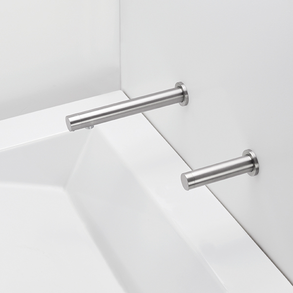 Wall-mounted faucet. Combines a minimalistic design with vandal resistant features. Helps washrooms stay clean and saves water. Easy installation. Long lasting even in the harshest installation sites. Ideal for shopping malls, sport facilities and entertainment centers.