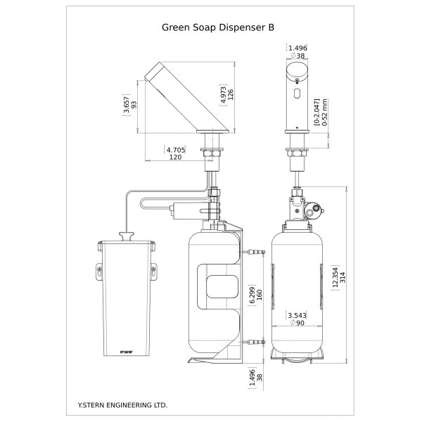 Closing automatically without dripping, Stern´s touch free soap dispenser helps to ensure that the bathroom will stay organized and neat. Combined with Green touch free electronic faucet, it creates a germ free and automated environment.