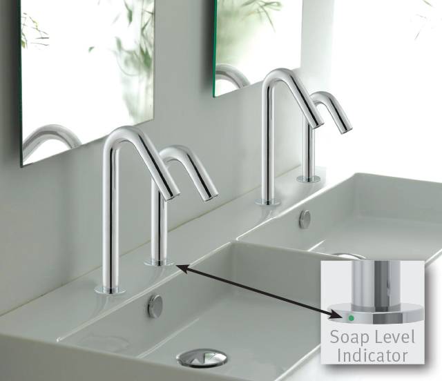 So now, in addition to our touch-free technology when using the product, there is no need to go near the tank at all until the soap level indicator shows low soap levels!