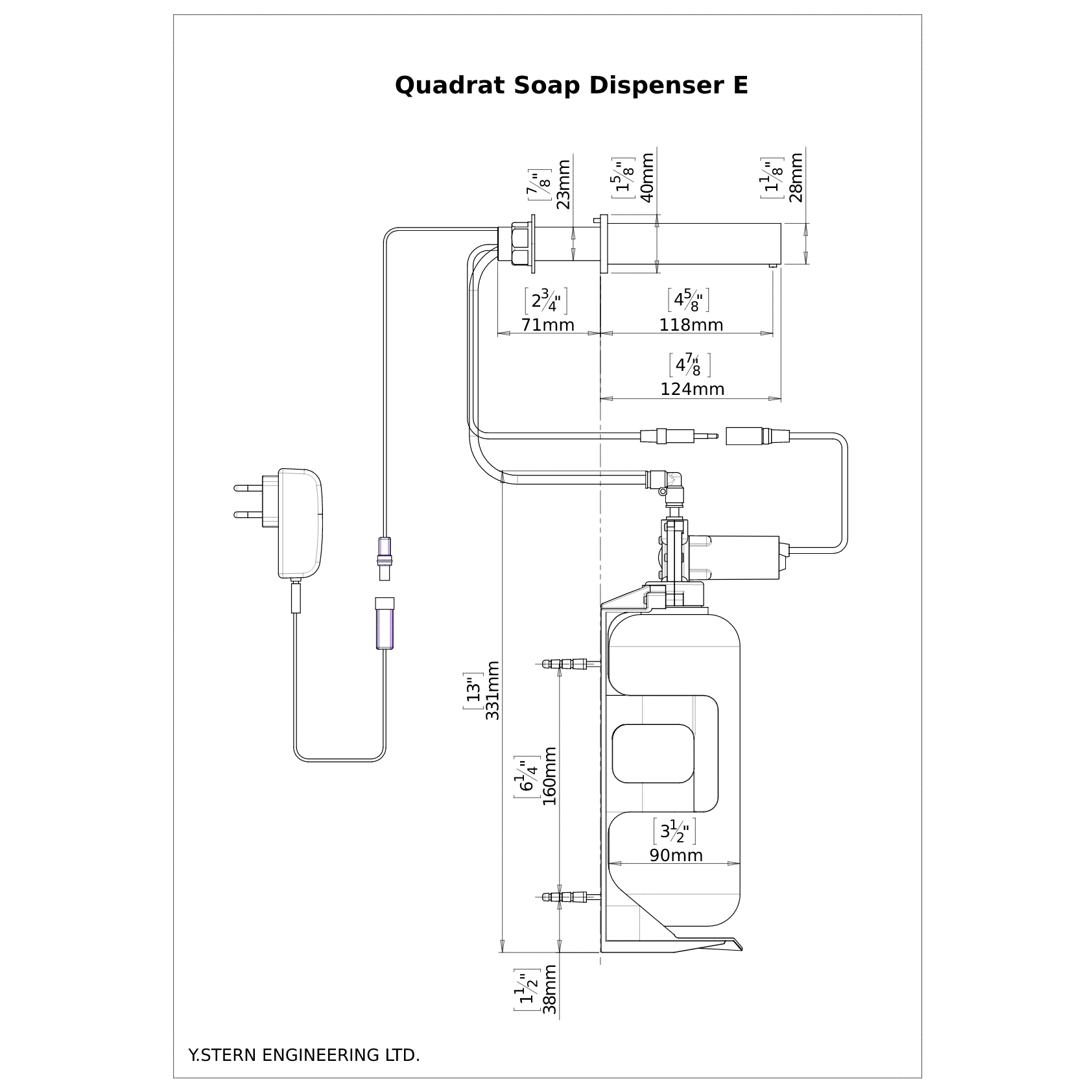 • Touch free soap dispenser for wall mounted installations.