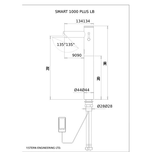 Touch-free electronic commercial tap for deck mounted installations. Activated by infrared sensor. Tall version for counter top washbasins. Long spout version. For hot and cold water. Includes a mixer for water temperature adjustment. Filters included. Chrome plated body, other finishes available. Latching solenoid valve is located above deck inside the product for added vandal protection. Regular faucet installation with simple connection: battery (Smart 1000 Plus LB – 235551) or transformer (Smart 1000 Plus LE – 235651). Adjustable setting by remote control: sensor range, security time, delay in, delay out, on-off and reset to factory settings. 24 hour mandatory hygiene flush available upon request.