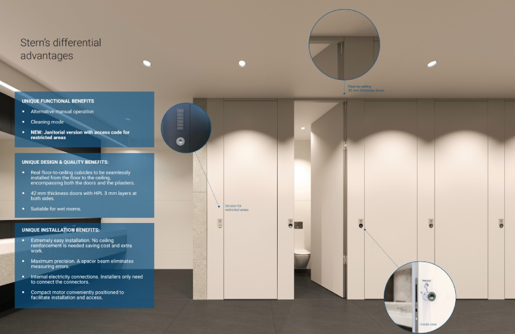 Upgrade your restroom experience with our touchless WC cubicles and occupancy indicators! Discover innovative solutions for enhanced hygiene and convenience in public spaces. Explore the benefits and features of these cutting-edge cubicles offered by Stern by downloading our catalog now.