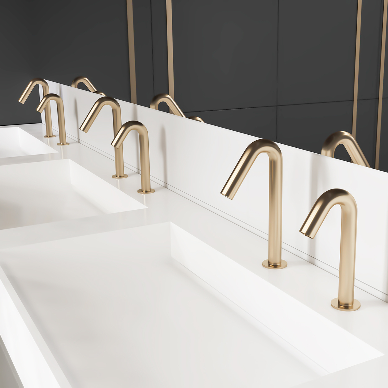 Upgrade your commercial restroom with the sophisticated and cutting-edge Trendy Touchless Deck Mounted Faucet from Stern, which offers both style and functionality to your facilities.
