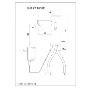 Touch free electronic commercial tap for deck mounted installations. Activated by an infrared sensor. For hot and cold water, the faucet includes a mixer to adjust water temperature and filters. Features a permanent ring illumination. Chrome plated body, other finishes available. Latching solenoid valve is located above deck inside the product, which makes it more resistant to vandalism. Installed as a regular faucet, simply connect the transformer to complete the installation.