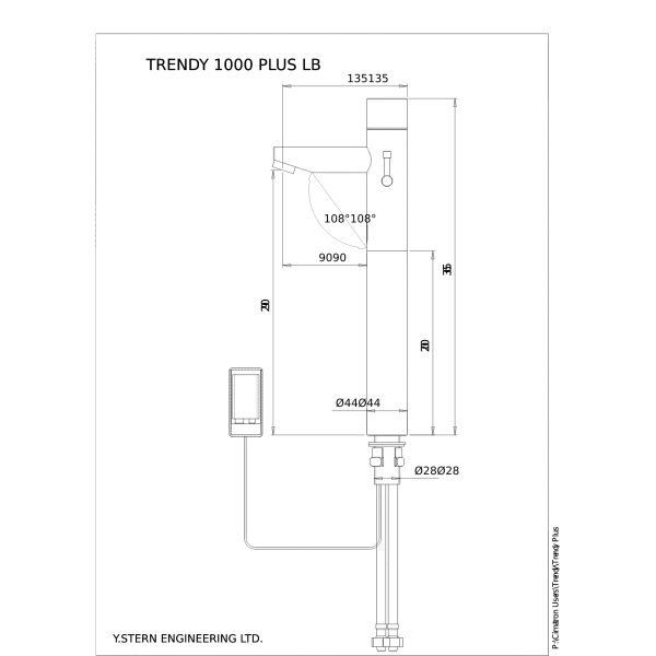 Touch free electronic faucet for deck mounted installations. Tall version for counter top washbasins. For hot and cold water, the faucet includes a mixer to adjust water temperature and filters. Activated by an infrared sensor. Chrome plated body, other finishes available. Includes a low battery indicator. Latching solenoid valve is located above deck inside the product, which makes it more resistant to vandalism. Installed as a regular faucet, simply connect the battery to complete the installation.