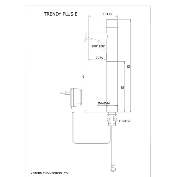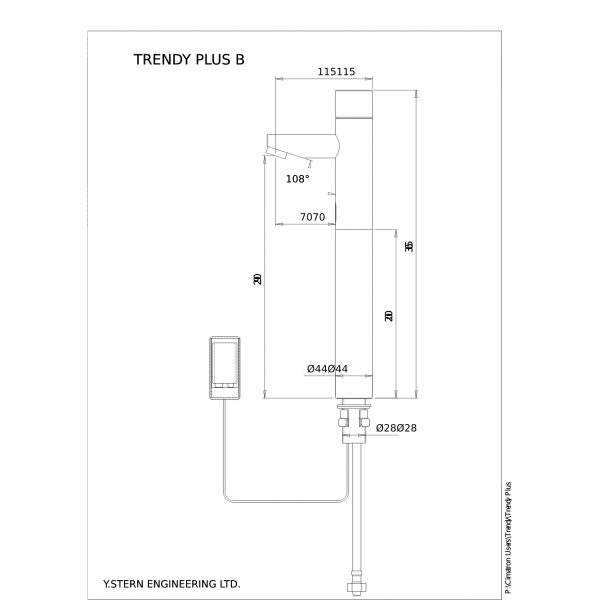 Touch free electronic commercial tap for deck mounted installations. Tall version for counter top washbasins. For cold or premixed water. Filters included. Activated by an infrared sensor. Chrome plated body, other finishes available. Includes a low battery indicator. Latching solenoid valve is located above deck inside the product, which makes it more resistant to vandalism. Installed as a regular faucet, simply connect the battery to complete the installation.