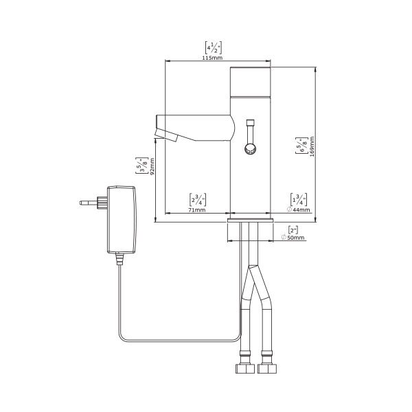 - For hot and cold water, includes mixer for water temperature adjustment.