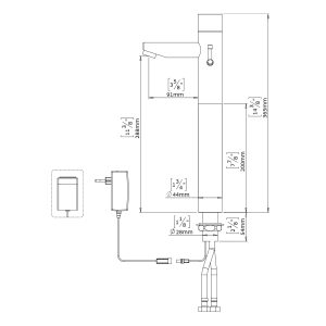 Touch-operated self-closing electronic lavatory faucet. For cold or premixed water. With LED ring illumination. Filter included. The faucet will automatically shut off after a factory set flow time of 8 seconds. Flow time is adjustable on site. Latching solenoid valve is located above deck inside the product for added vandal protection.