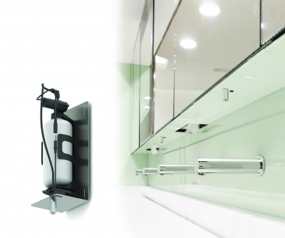 Behind the mirror soap dispensers or behind the mirror foam dispensers with a hidden wall mounted installation, in a complete & modular sanitary cabinet.